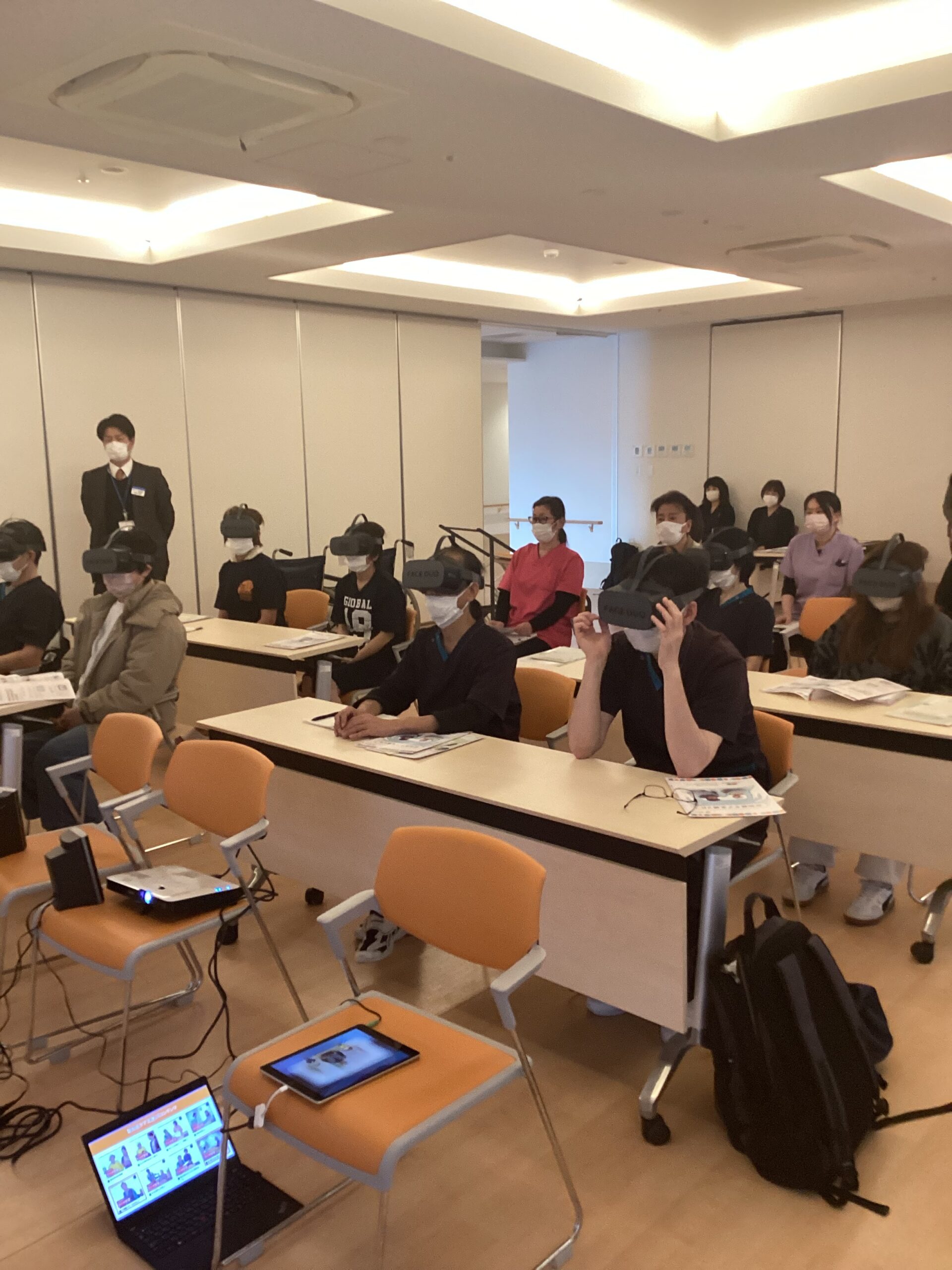 当施設では、職員の認知症理解をより深めることを目的に、外部講師の協力を得て「認知症VR体験型研修」を実施しました。